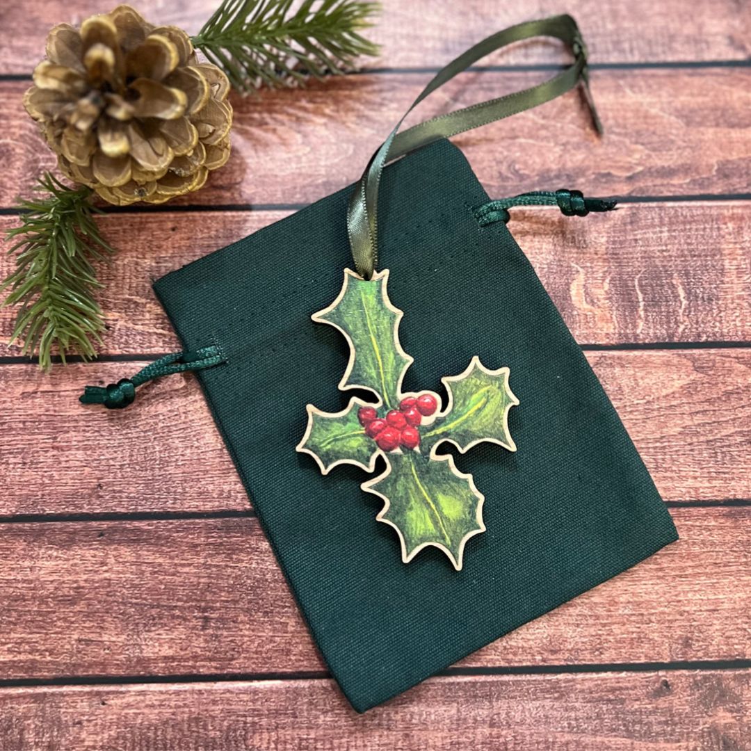 Luxury Handmade Holly Wooden Decoration | Eco-Friendly Christmas Ornament